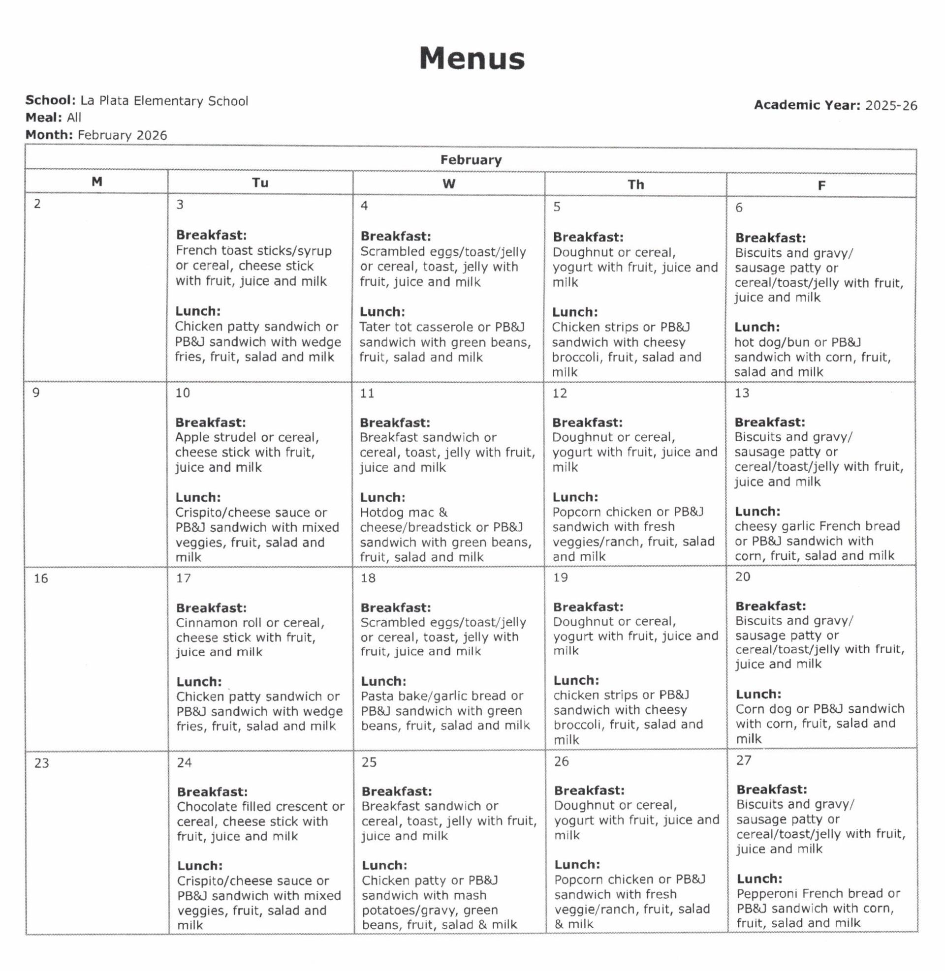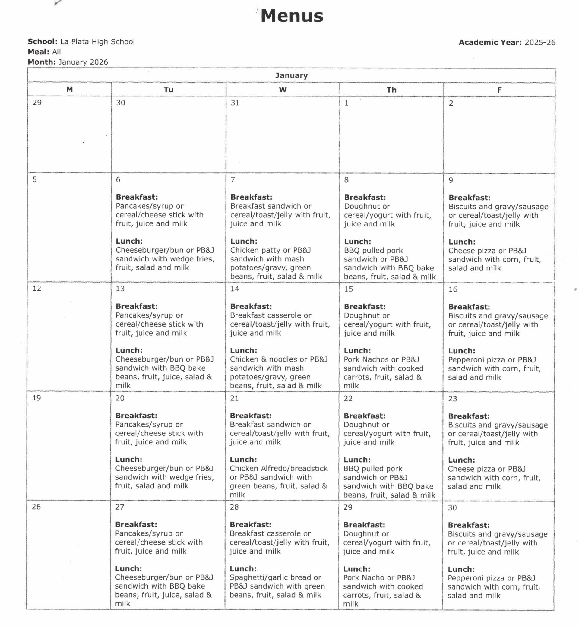 Each student will be issued a bar-coded meal card. When the student deposits money into their meal account, they may then purchase breakfast or lunch. The student must have the card with them during breakfast or lunch. This card is coded to the individual student and may not be used by another student. If a student is caught in possession of another student’s meal card, they may be subject to disciplinary action. If a student loses their card, a new card will be issued after the student pays $2 for the new card.